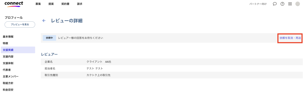 以下、添付右側の「依頼を取消・再送」をクリックしていただき再送を行ってください。