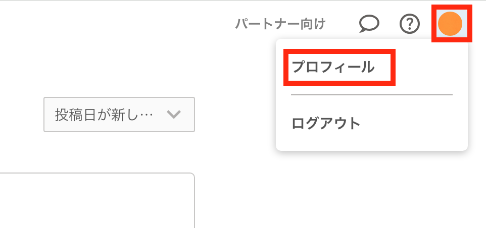 画面右上にあるアイコンマークを押していただき、プロフィールをご確認ください。