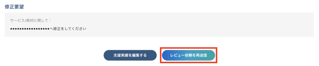 ⑤承認されたら、支援実績が修正されていることを確認し「レビュー依頼を再送信」をクリックしてください。レビュアーに再度メールが届きます。