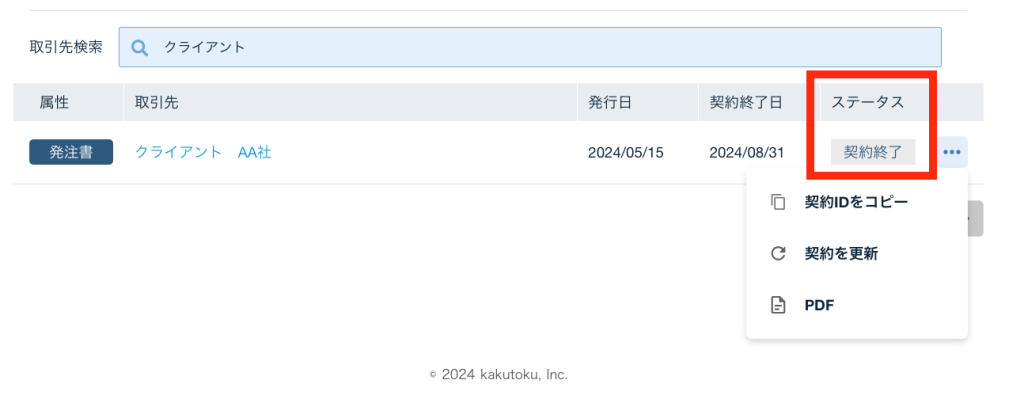 契約書内の契約期間が終了している場合、ステータスは自動的に「契約終了」となります。