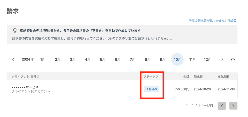 その際に、ステータスが「予約済み」となっていれば請求予約完了となります。