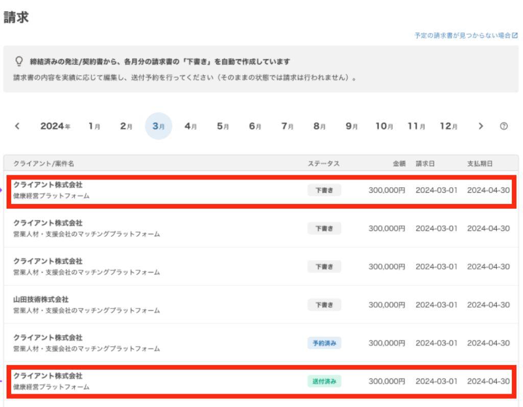 ※このステータスは、請求書がすでにクライアントへ送付されている状態を指します。